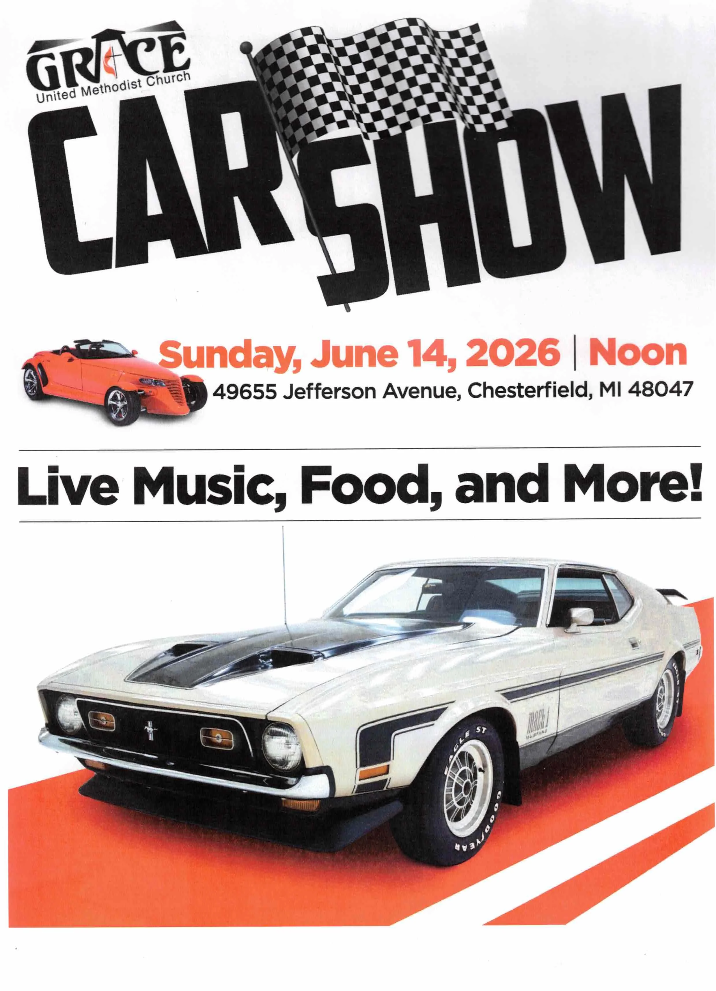 Grace will host a car show starting at noon on Sunday, June 14. There will be live music, food and, of course, cars galore at this first-of-its-kind event. See Tom Farrell for more information.